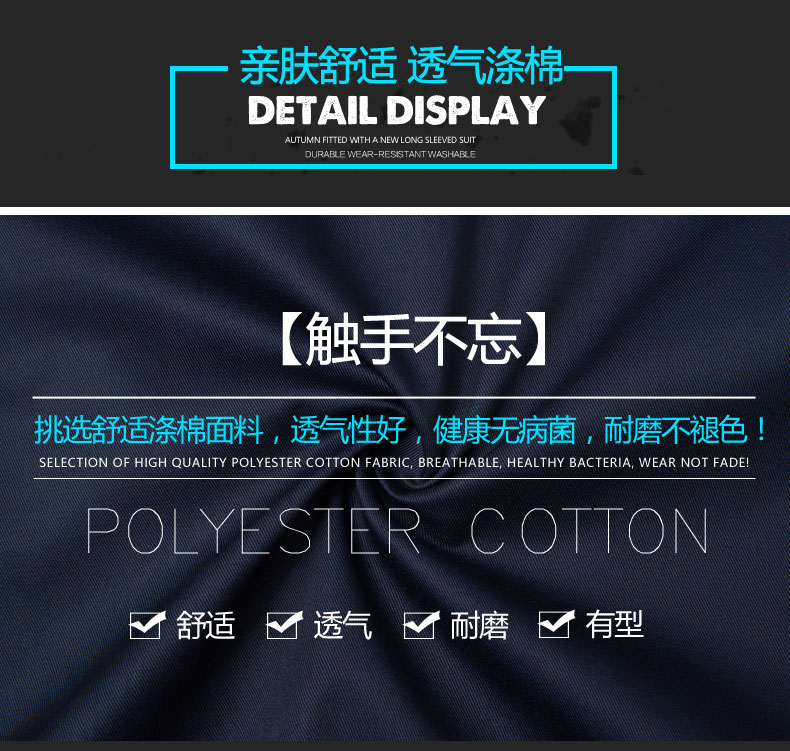 新款工作服,采用專門定制面料制作,親膚舒適透氣滌棉,透氣性好,耐磨不褪色,做到了四有特點,舒適、透氣、耐磨、有型。