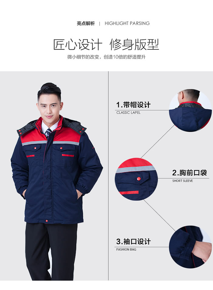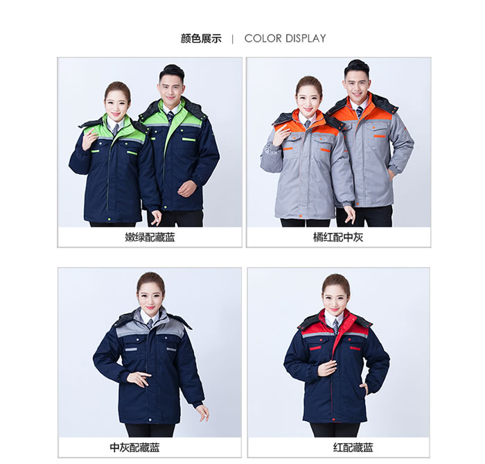 時(shí)尚拼色棉服工作服定做,棉襖工作服定做,冬季防寒工作服定做